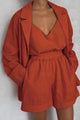 This top and shorts set offers a comfortable and stylish outfit option. With a combination of a top and shorts, you can easily mix and match to create multiple looks. Perfect for those who value versatility and convenience in their wardrobe.