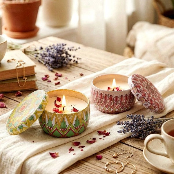 - Portable & Reusable Tins: Made from high-quality, durable tin material. These candles are travel-friendly and the beautiful containers can be repurposed as jewelry or small item organizers once the wax is gone.